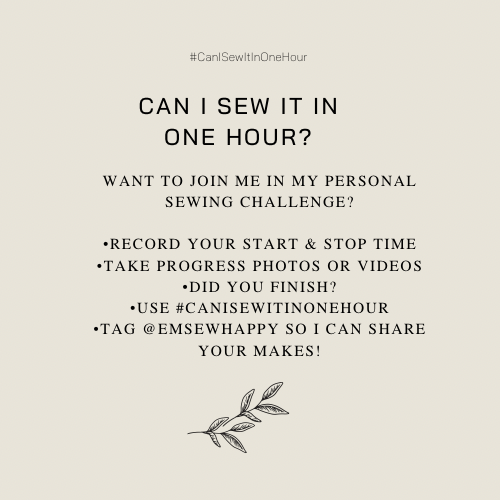 Back to the sewing challenge! I decided to start the Can I Sew It In One Hour hashtag (#CanISewItInOneHour) to keep myself motivated. I’m an over thinker and sometimes my need for perfection stops me from just giving something a go. It’s also that time of year when everyone is short on time and motivation so I thought it would be a fun way to connect with others who are feeling the same way. I’m excited to see what patterns others might suggest for me or what everyone will try. I hope to make it a safe space for anyone wanting to join in. It’s not a serious challenge with a hundred rules and there are no prizes apart from the joy of sewing. It’s a place for connection and support. I hope it inspires a lot of joyful sewing and laughter.
