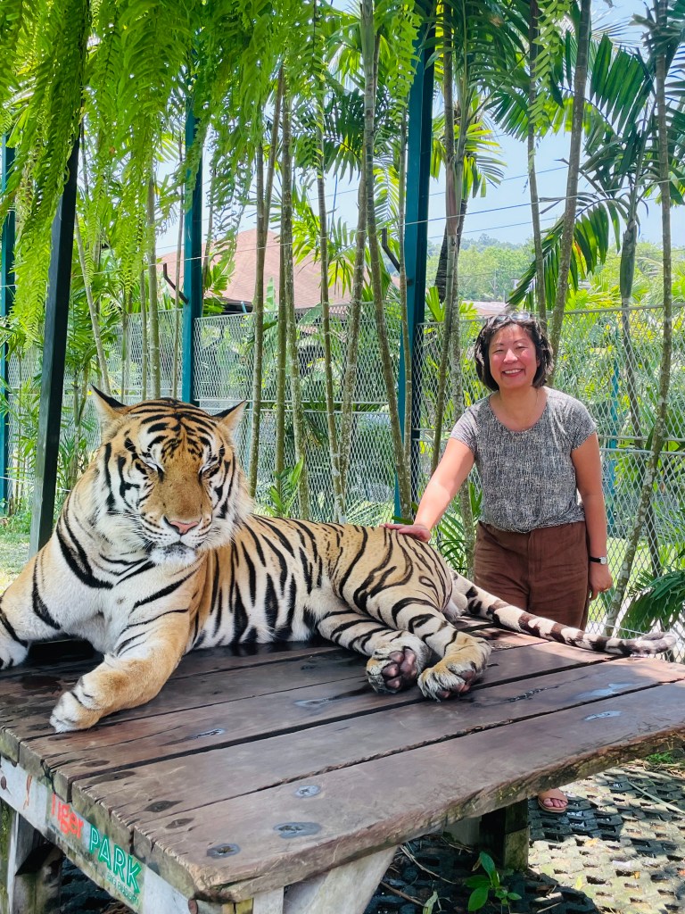 Thailand is home to some amazing temples with 94% of it’s population being Buddhist. To visit these holy sites there is a dress code where legs and shoulders are covered out of respect. I wore my True Bias Dani Pants with my Cashmerette Brattle Top and the linen in the pants were so cool to wear. We visited the Big Buddha which has amazing views and we also stopped by Wat Chalong Temple which is a huge complex of temples. Unfortunately, we were also taken to Tiger Park. I can’t comment on the ethics of this type of tourism. It was very clean and the tigers looked well fed but I did not do any research beforehand as I wasn’t expecting this stop. They are magnificent creatures and I hope that this sort of tourism encourages people to look after their habitat.