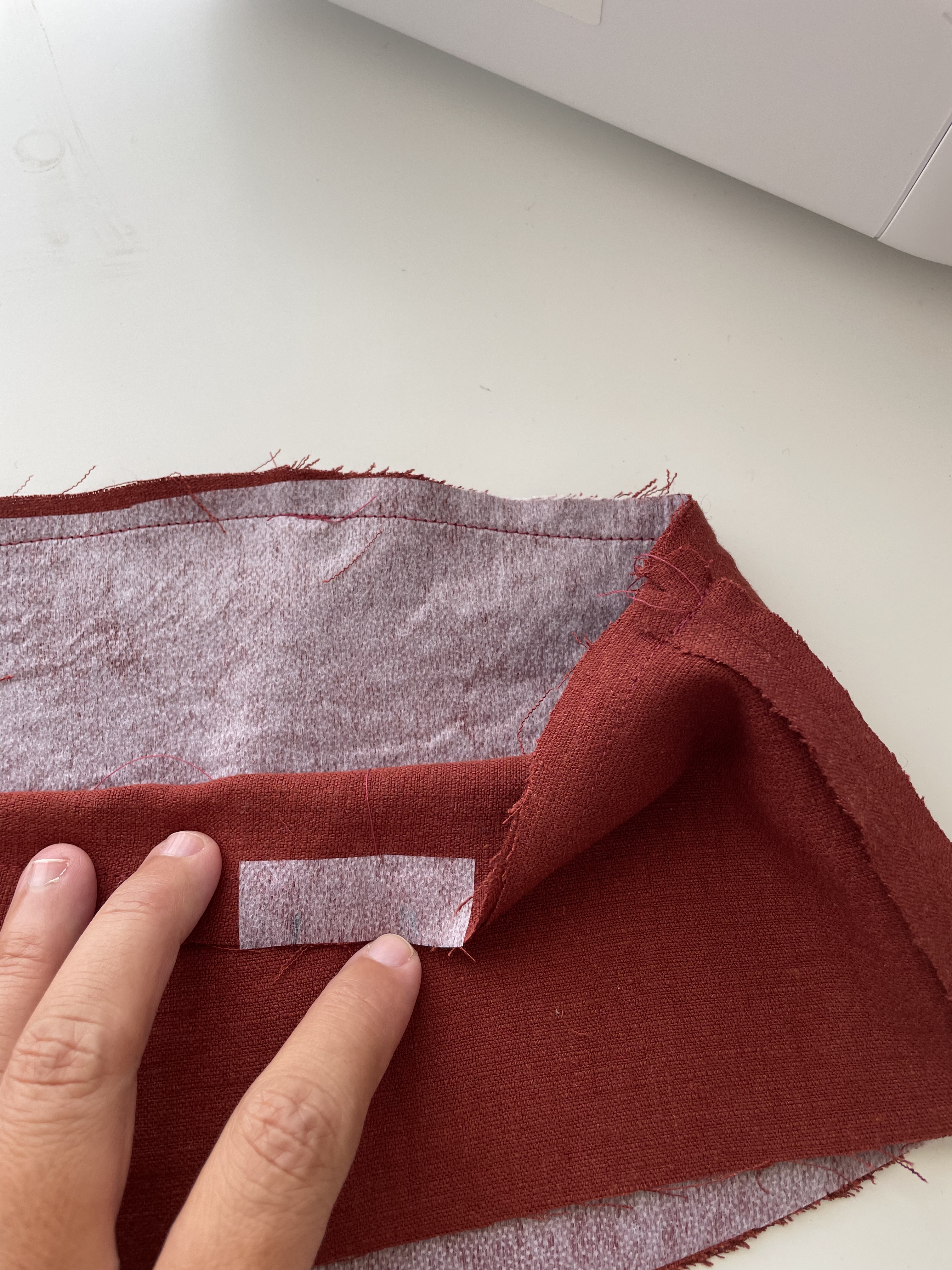 However, I just couldn’t resist making the whole dress after finishing the top half. I was using some leftover linen and lyocell blend from another project. It’s in this beautiful red brick colour.