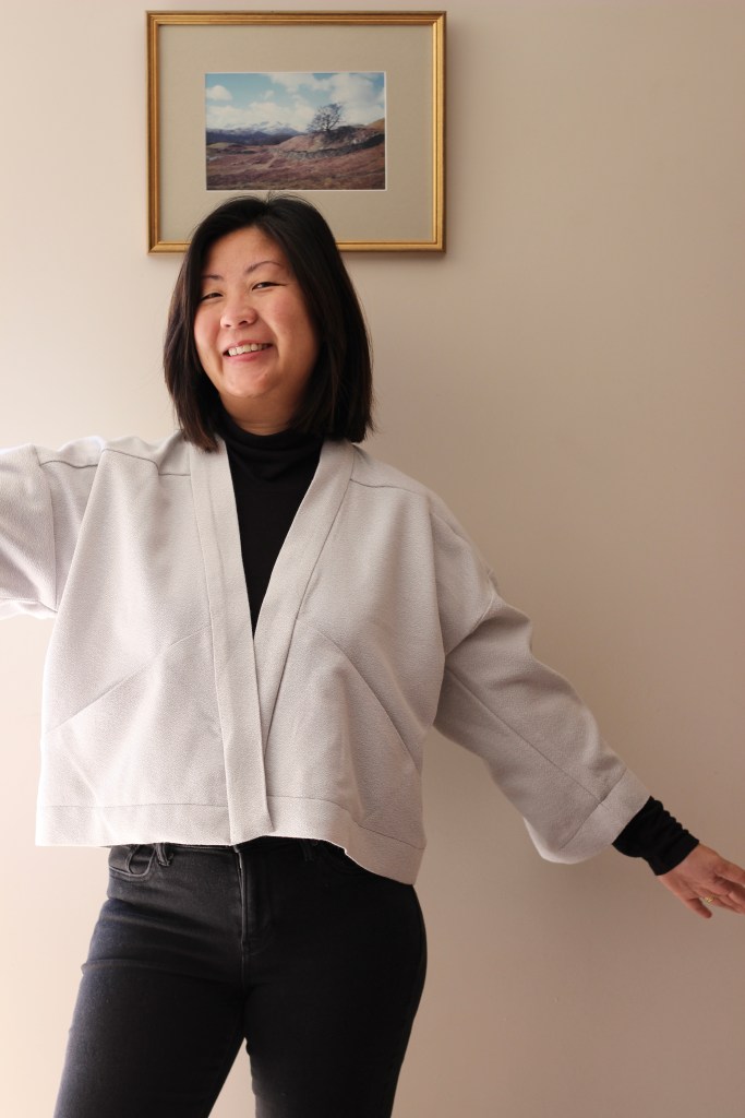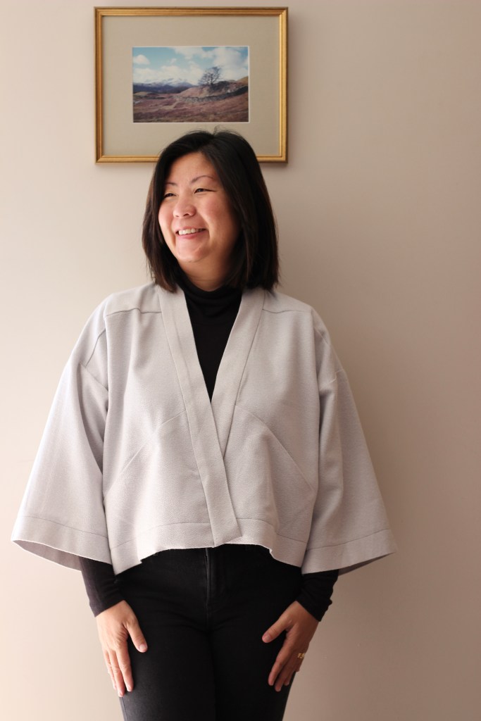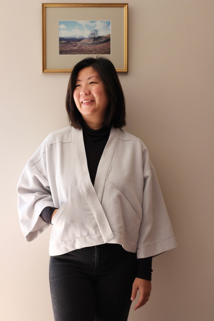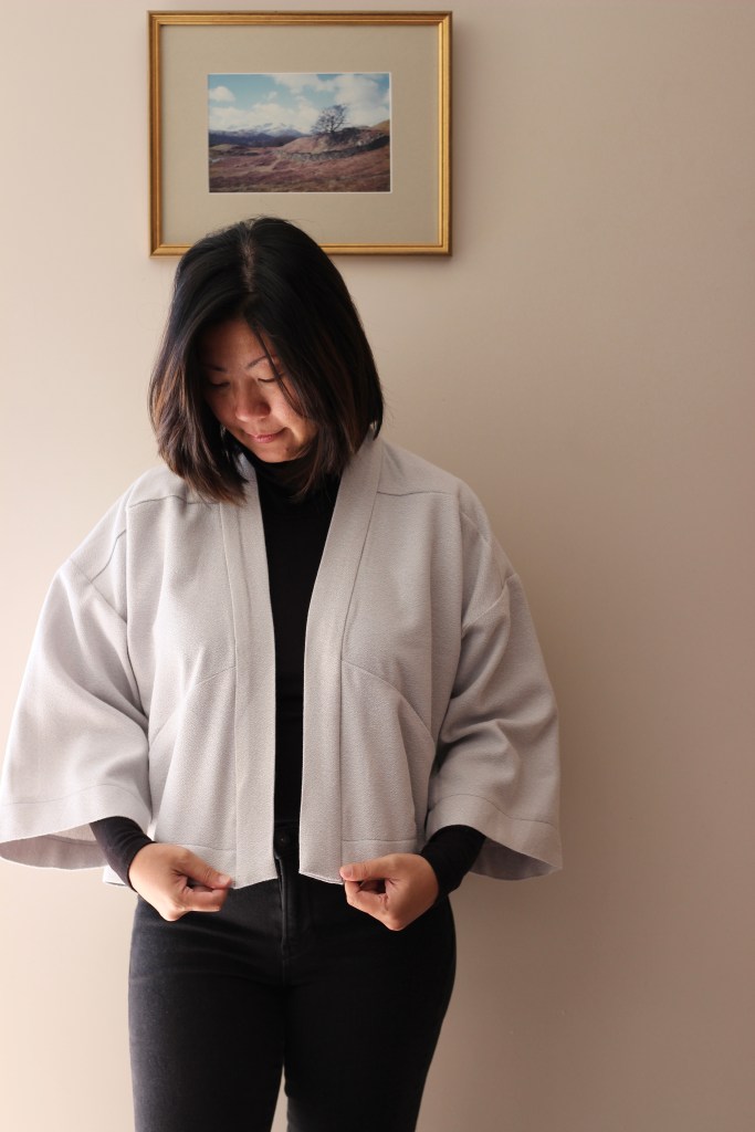 Just a few notes from my version, I sewed the size M which fit exactly as I liked. This pattern has a size range from 42 1/2 inch bust to 55 1/4 inch bust. I used a wool blend fabric to make my Wooster Jacket as it’s an unlined jacket so I chose a fabric that would sit softly against the skin. This fabric has a bit of polyester in the mix which made it hard to press and so when it came to attaching the neckband I stitched-in-the-ditch rather than topstitching it on. Also, there are no indications in pattern of when to overlock / serge the seams so I just noted where to do this when I read through the pattern. Other than that, it turned out exactly as the pattern promised!