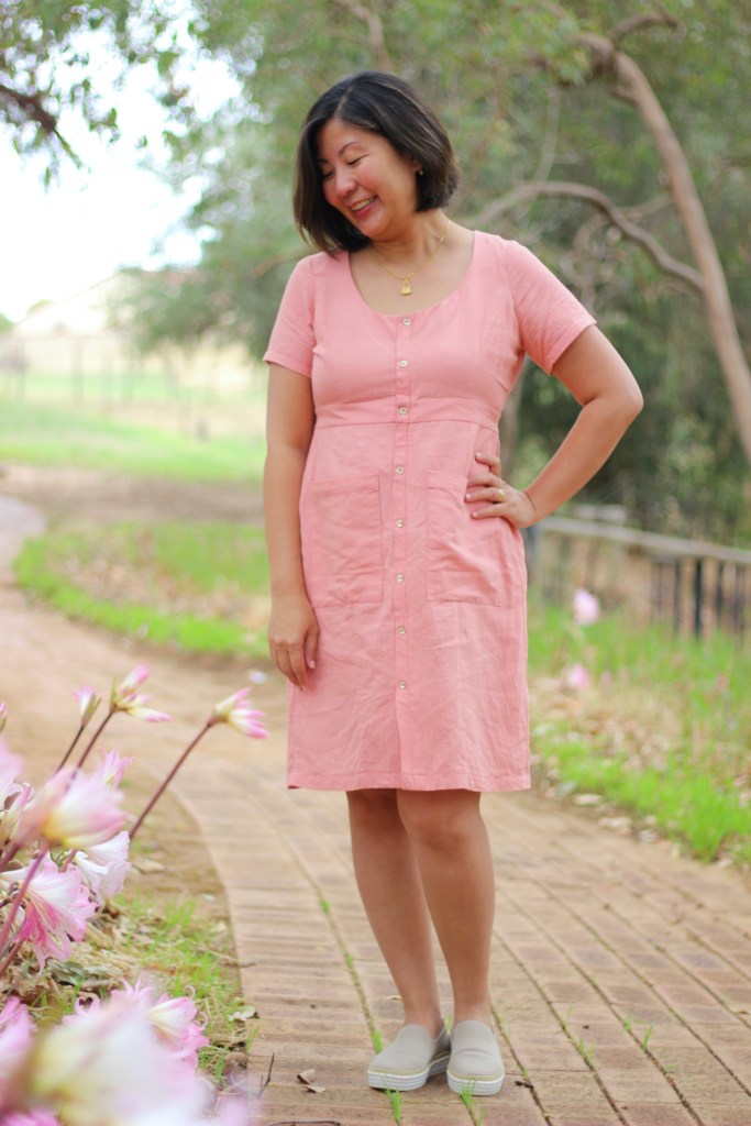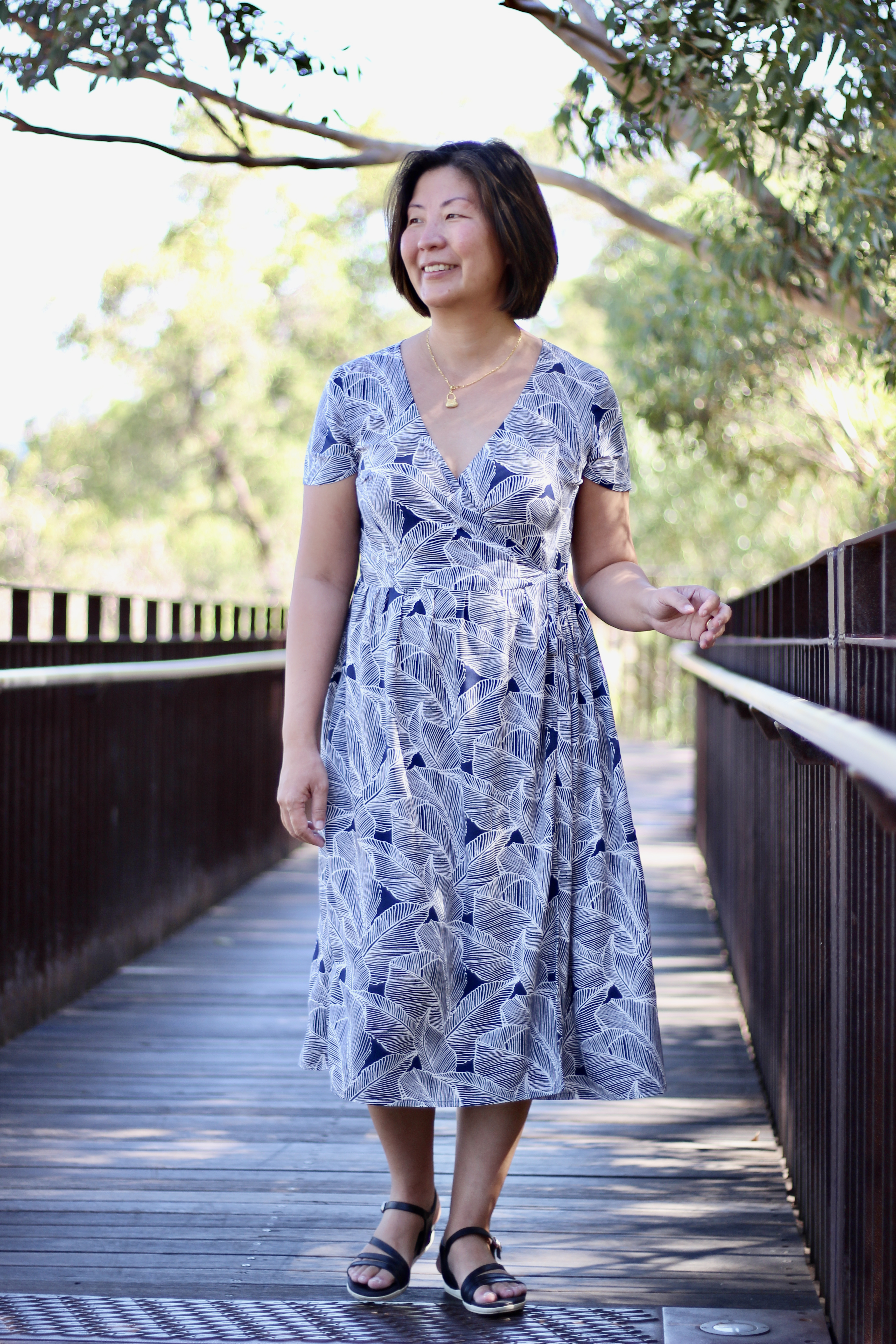 The liberty style cotton lawn is an easy fabric to sew as it’s a stable woven fabric. I’ve used a 75/11 size machine needle. It would also be okay to sew with a universal needle. I have chosen to finish all the seams with overlocking which is nice and quick. In fact, the whole sewing process was quick. It’s a great project if you need a dress quickly as it can be done in an afternoon. I’m definitely squeezing another one in but next time I’m going to shorten it for a beach dress and make it with super lightweight fabric. With this heavier cotton lawn, I’m wearing it more as a winter dress and it’ll also be great for the in-between seasons. I would style it with a denim jacket and boots to make it cosy to wear.