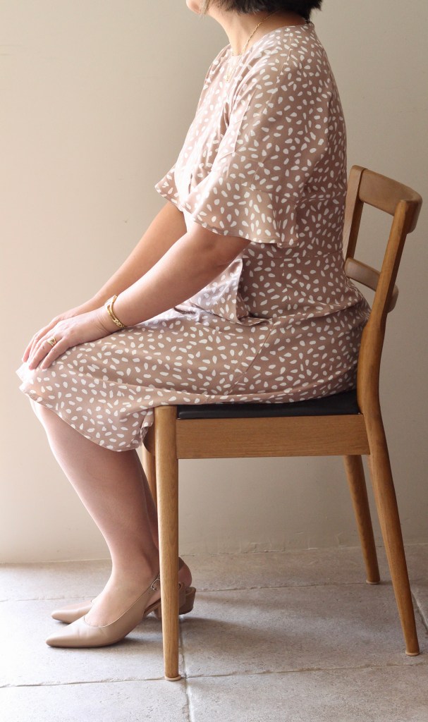 The dress is a lovely loose fit. There’s obviously a lot of ease in the pattern so sizing is straightforward. My measurements of 37-inch bust, 33-inch waist and 38-inch hips fit between the size38 and size 40 so I made the size 38. I’m comfortable with the fit. The pattern comes as a dress but also a blouse and has long or shorter sleeve options. I’ve chosen the longer sleeve option which has elasticised sleeve hems.