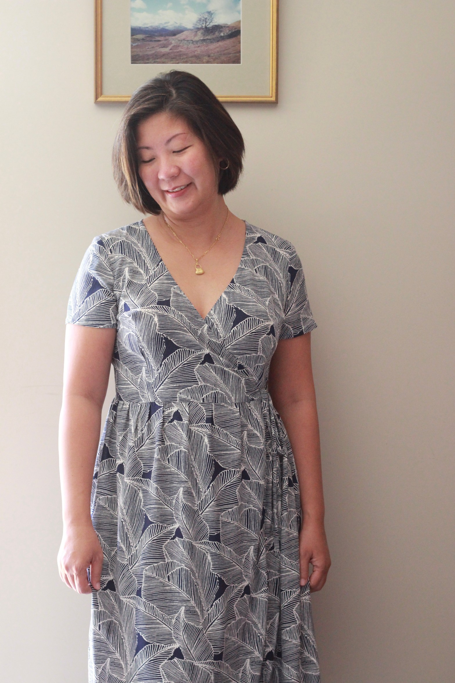 The liberty style cotton lawn is an easy fabric to sew as it’s a stable woven fabric. I’ve used a 75/11 size machine needle. It would also be okay to sew with a universal needle. I have chosen to finish all the seams with overlocking which is nice and quick. In fact, the whole sewing process was quick. It’s a great project if you need a dress quickly as it can be done in an afternoon. I’m definitely squeezing another one in but next time I’m going to shorten it for a beach dress and make it with super lightweight fabric. With this heavier cotton lawn, I’m wearing it more as a winter dress and it’ll also be great for the in-between seasons. I would style it with a denim jacket and boots to make it cosy to wear.