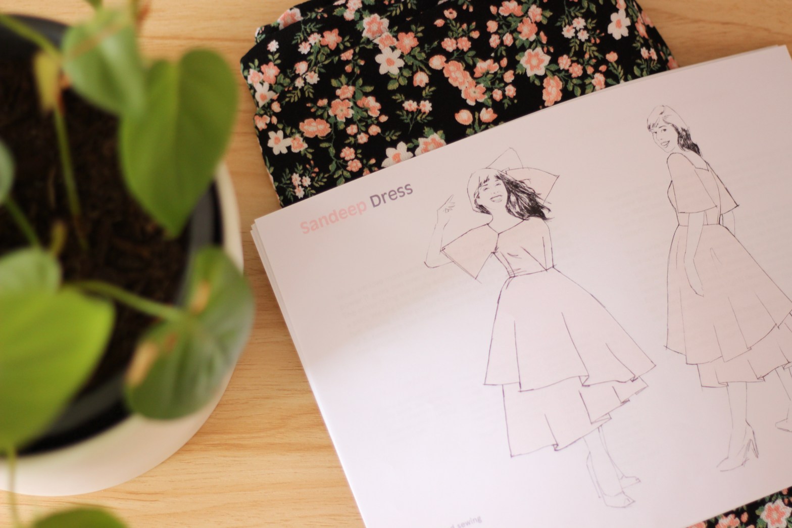 Lately, my sewing has had to take a backseat to other commitments. Sewing has become my go to activity for a bit of “me-time” so in the face of a busy month, I decided to pick a pattern that I could sew a little at a time but also something a bit different and challenging. By Hand London is well known for their beautiful dresses. I recommend it to anyone who needs a special occasion dress! From BHL, the Sandeep Dress,“ has a close fitting bodice with V shaped darts, raglan flutter sleeves and a square faced neckline. Two asymmetric circle skirts are joined to a straight underskirt at the waist and mid thigh …”. For me, this pattern falls into the country chic, prairie chic or cottage core aesthetic.