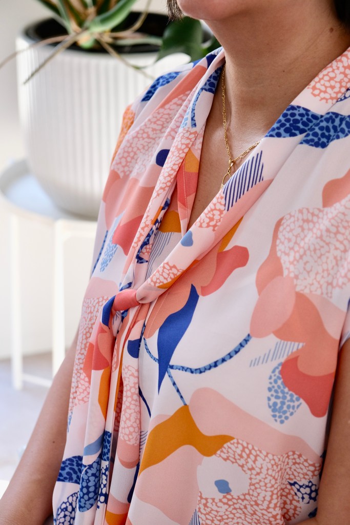Best of all, Sara drafted this top to use up remnants. For this top, I used some remnant polka dotted rayon. It was something I bought from East Coast Textiles which is sadly no longer trading. I chose the rayon because of the fluid drape of the fabric which suits the shirring. I like how Sara has a table setting out detailed instructions on how to choose the right fabric. I would have loved this when I first started sewing because fabric choice only improves with experience and I use to agonise over it, sadly sometimes making a mistake.