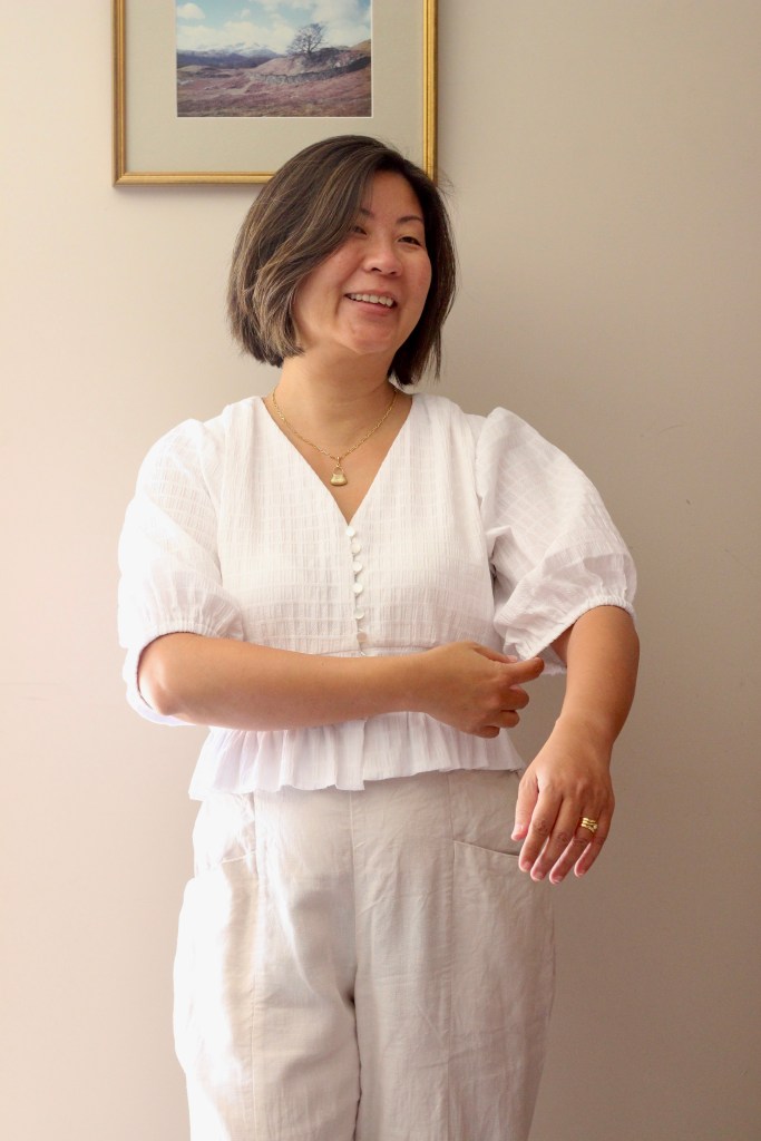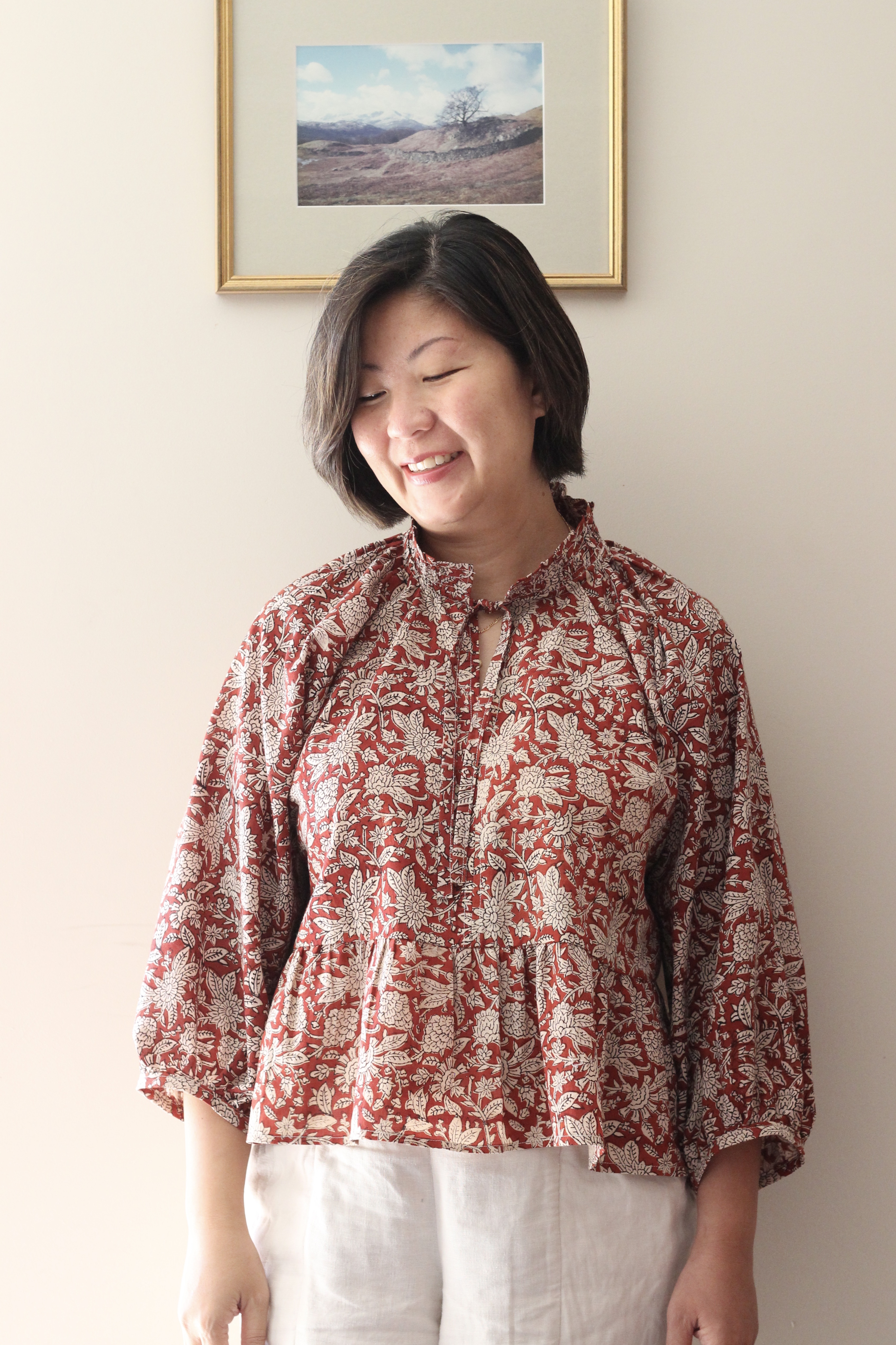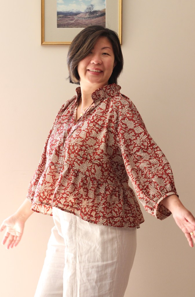 The sizing was easy. I didn’t use the sizing calculator this time, but it is a very handy tool to know where to start in the toiling process. Talking about toiling, I must confess that I did not toile this blouse. I’ve been sewing Cashmerette Club patterns now since February, so I felt confident about the sizing. I guess that is one of the many advantages of joining a club. Because all your patterns come from the same source, there is consistency in the fit and also there is familiarity in the pattern sizing. I sewed the blouse in a size 10 without any alterations, there is a good amount of ease in the pattern otherwise my usual alterations would have been to grade the size 10 bodice to a size 14 waist with a 1-inch small bust adjustment. I’m happy with the size 10 and I’ll be making it in the same size in the future.