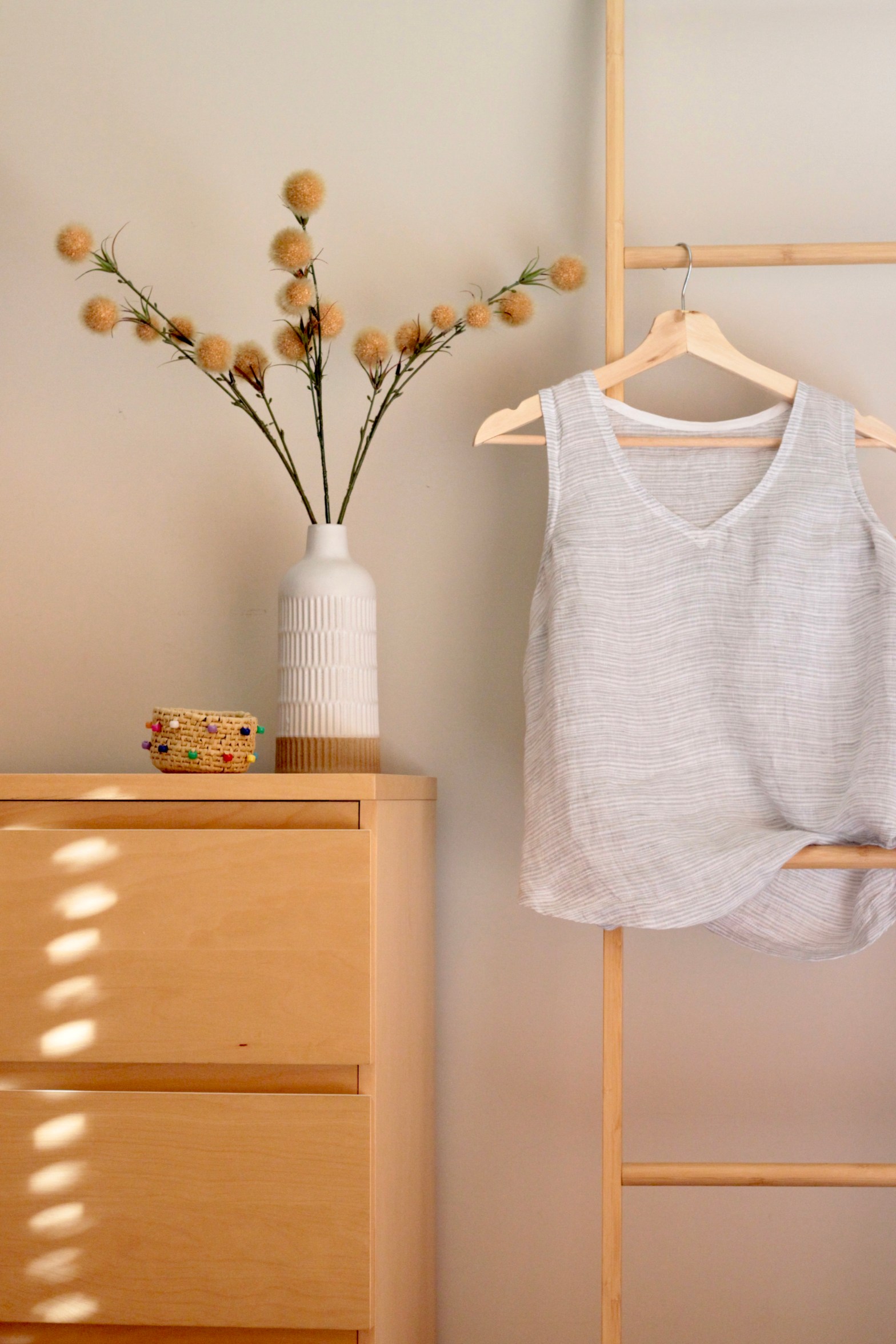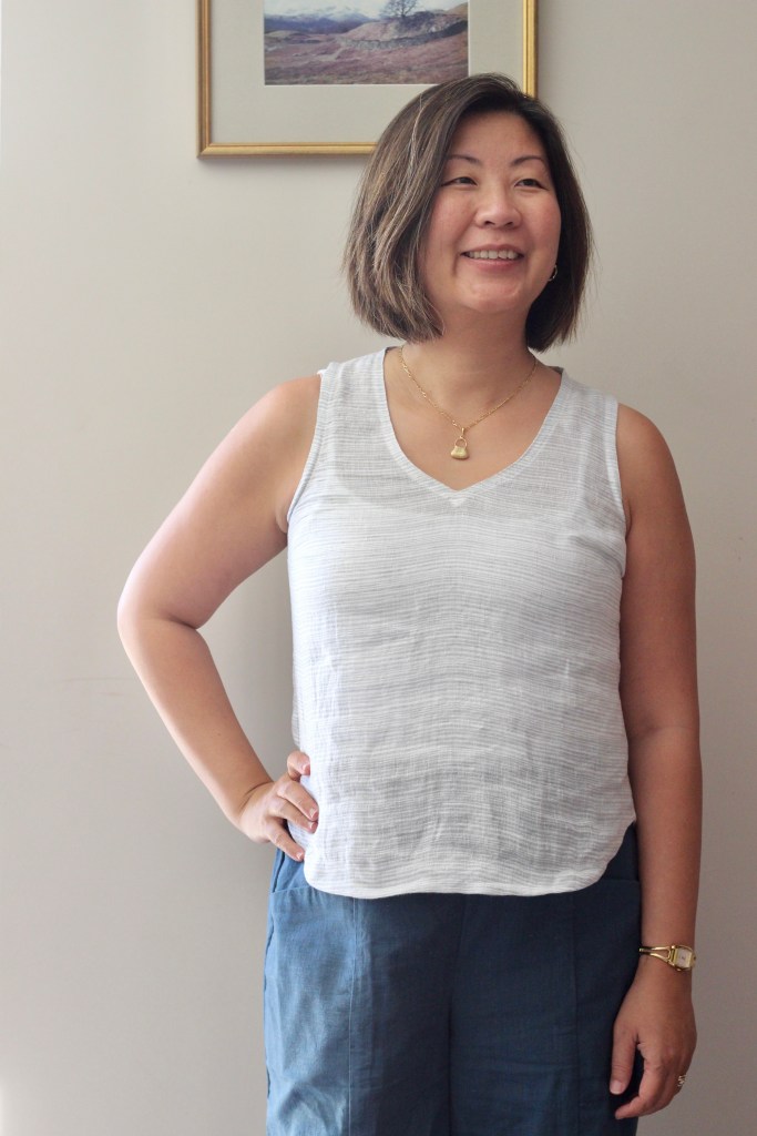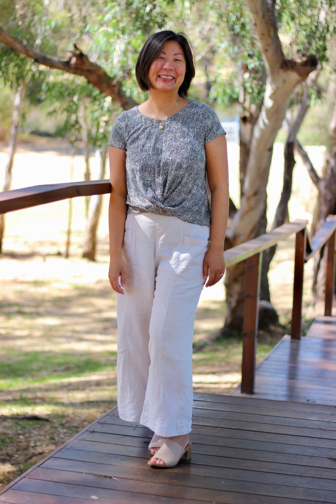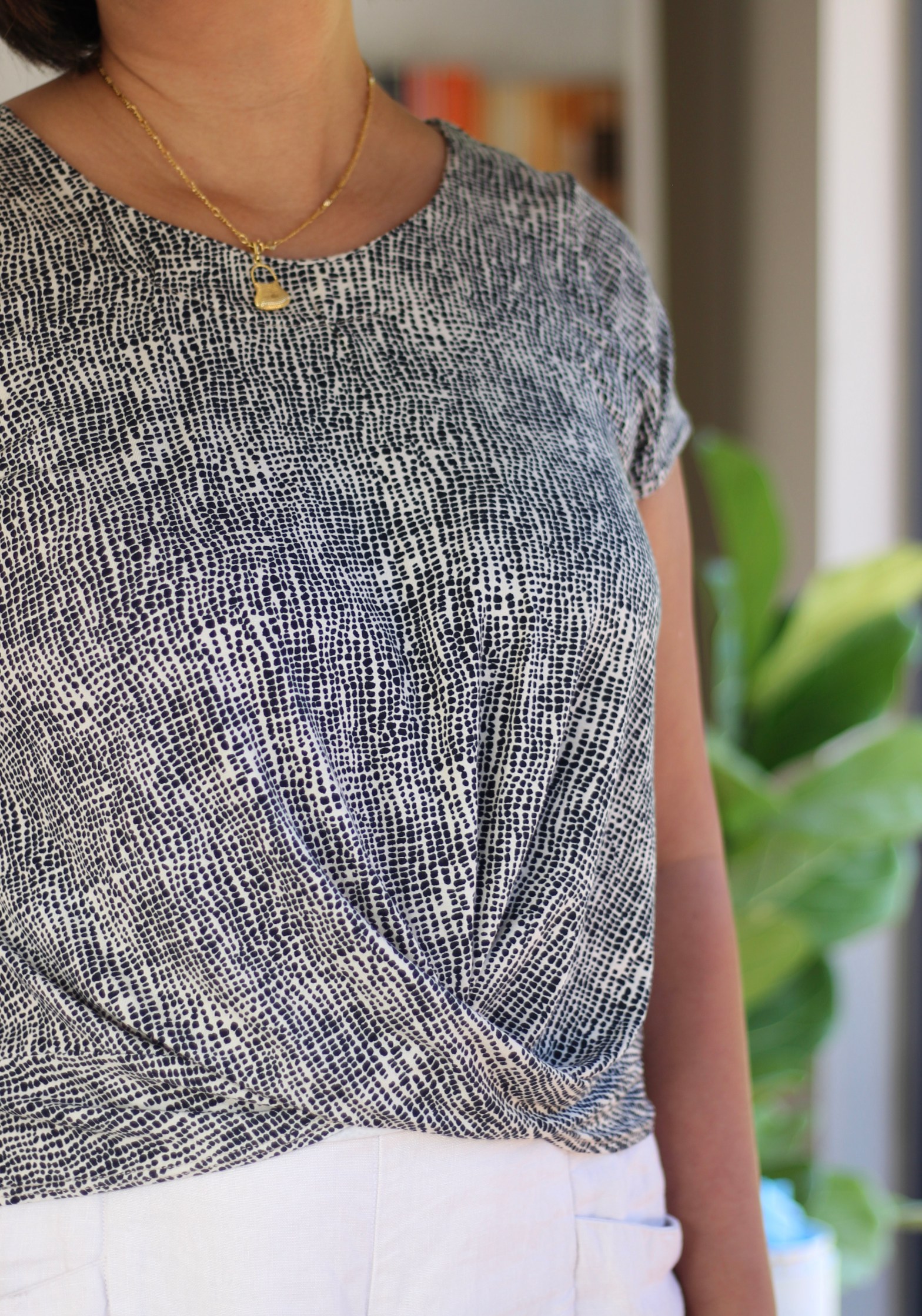 This top is made for lightweight woven fabrics. I’ve used a textured white cotton voile. This is an addition to my tropical getaway capsule which I’m counting down to with the cold weather now setting in! The fabric is slightly sheer and very breathable so it’s great for humid weather.