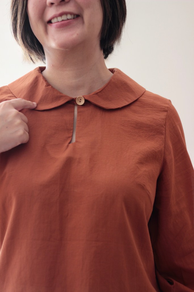 Overall, this is a make I’ve relished from start to finish. Even better, it’s a comfortable wear. The one detail I varied was that I left off the button in the collar band. Only because I know that I would never use it and I might even wear it with the first button undone. I also wanted to talk about button installation. I’m not sure if it’s just my machine but I always find the top buttonhole a pain to sew. I think my machine is extremely sensitive to a change in fabric thickness and it tends to get stuck. If you’ve had the same issue, my solution was to turn the blouse around so that the collar is facing you and this gets it out of the way and evens up the presser foot. My first buttonhole is not the best so don’t look too closely!