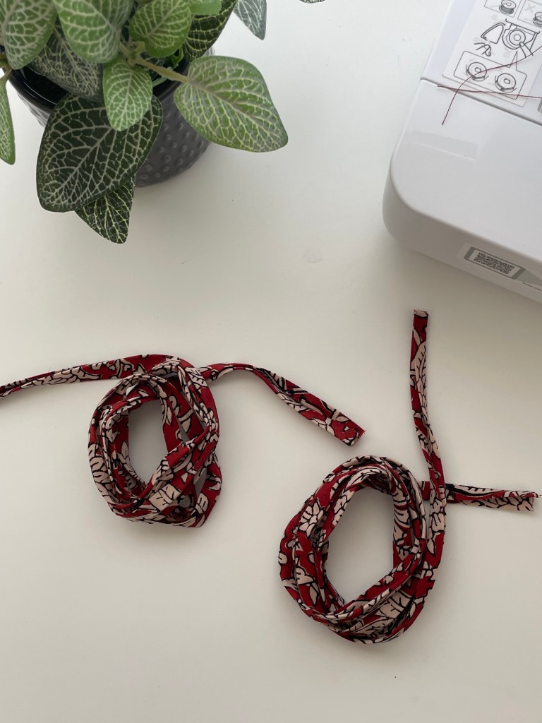 I couldn’t figure out from the different versions that I checked out on Instagram whether these pants were mid-rise or high-waisted. I love wearing everything high-waisted, so I’ve sewn mine to fit that way. I moved my belt ties up by 1cm to help lengthen my front rise. I’m not experienced with pants adjustment, but I thought this was just a simple way of adjusting the rise. I then had to sew the waistband down at 5cm not 6cm and when I stitched the waistband to make the ruffle for the waistband, I sewed it at 5/8-inch instead of 3cm. This probably doesn’t make sense unless you’re looking at the instructions of the pattern.