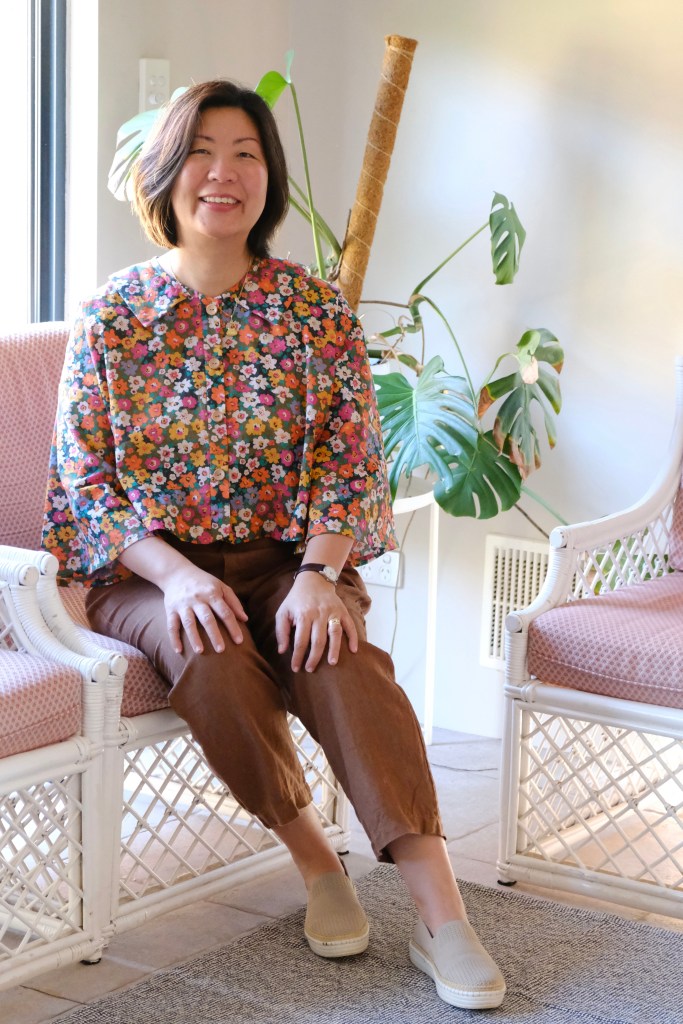 Every time I work with a Sewing Therapy pattern or watch one of Sara’s videos, I pick up a new tip or technique. For this project, I tried her suggested method for creating gathers. Rather than using the traditional double line of long stitches, I increased the stitch length and tension, as advised. This approach produced beautiful gathers, but I would recommend leaving very long thread tails for adjustments. I nearly ran out of thread tail, but fortunately, it all worked out in the end.